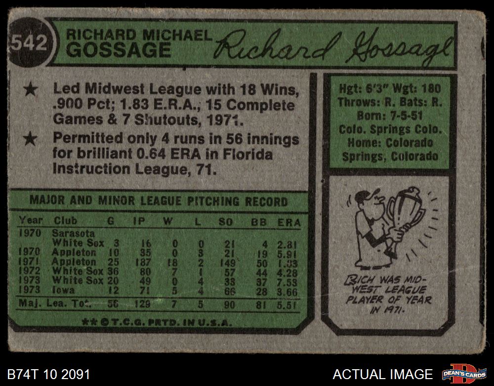 1974 Topps #542 Goose Gossage AUTHENTIC