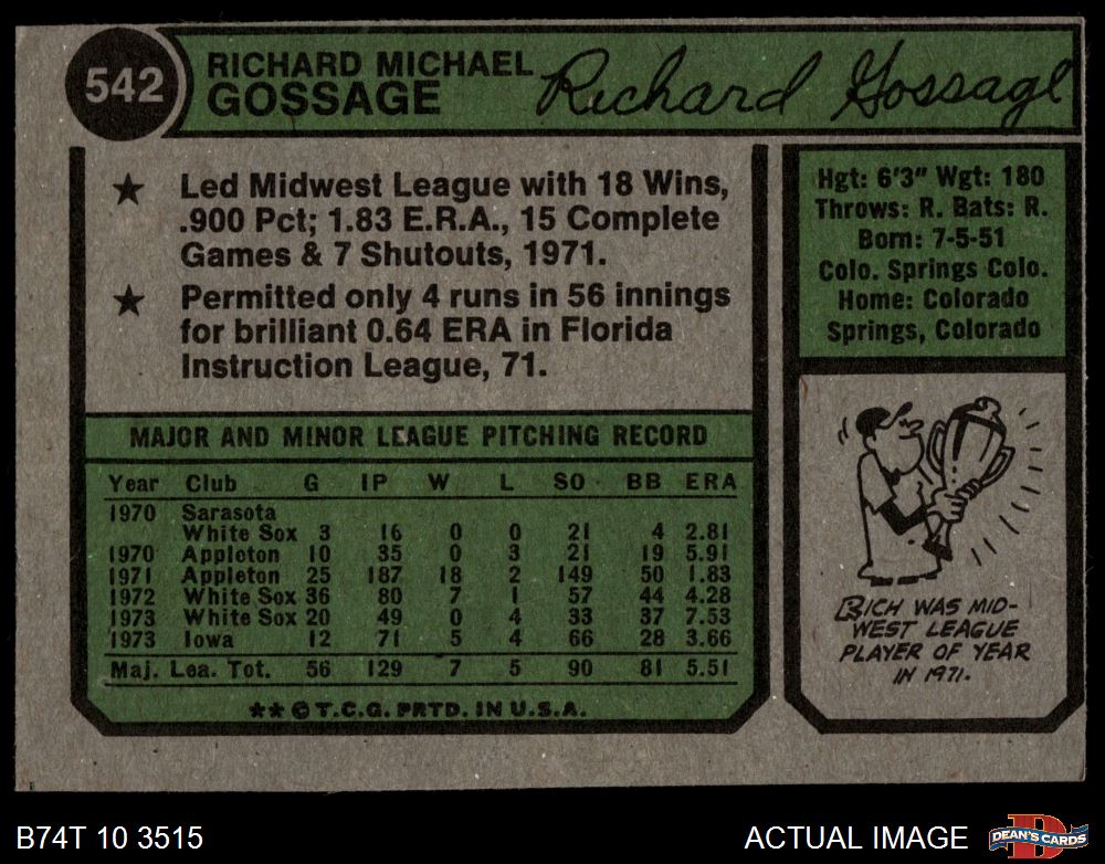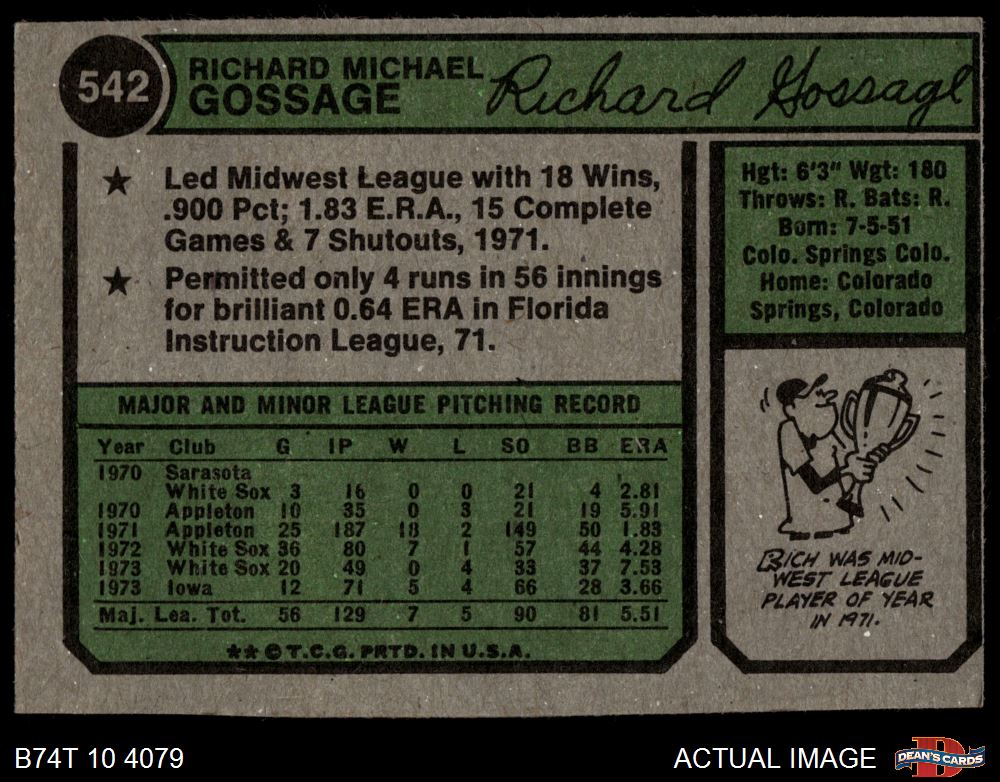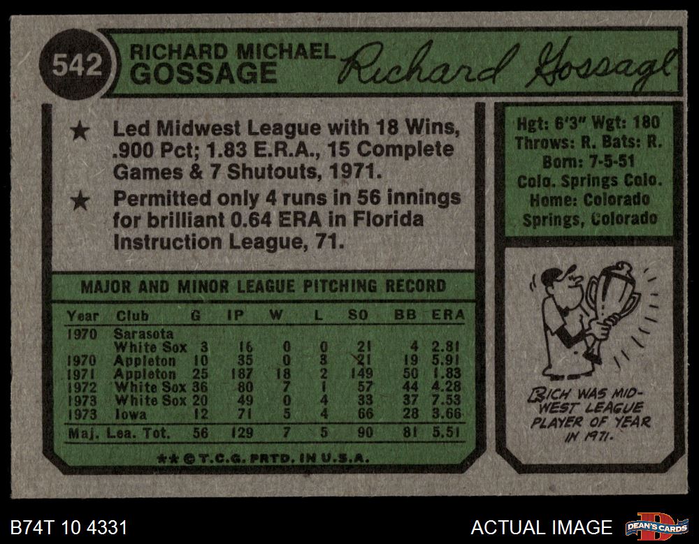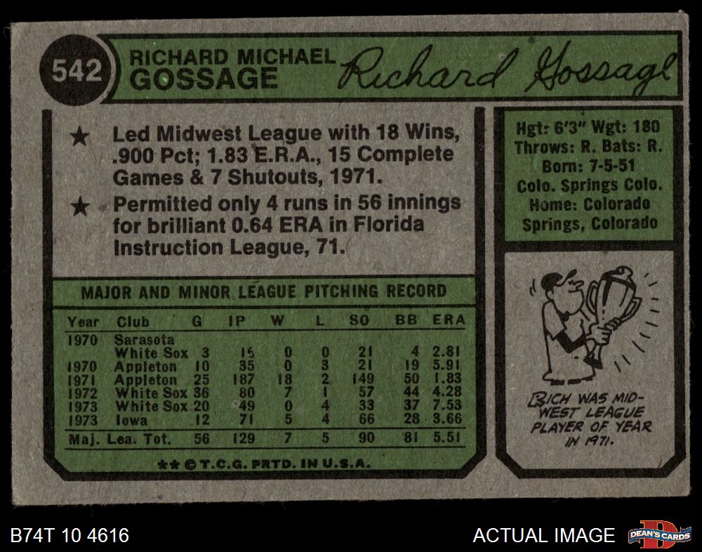 1974 Topps #542 Goose Gossage
