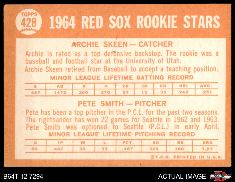 1964 Topps #428 - Pete Smith / Archie Skeen Red Sox Rookies 3 - VG