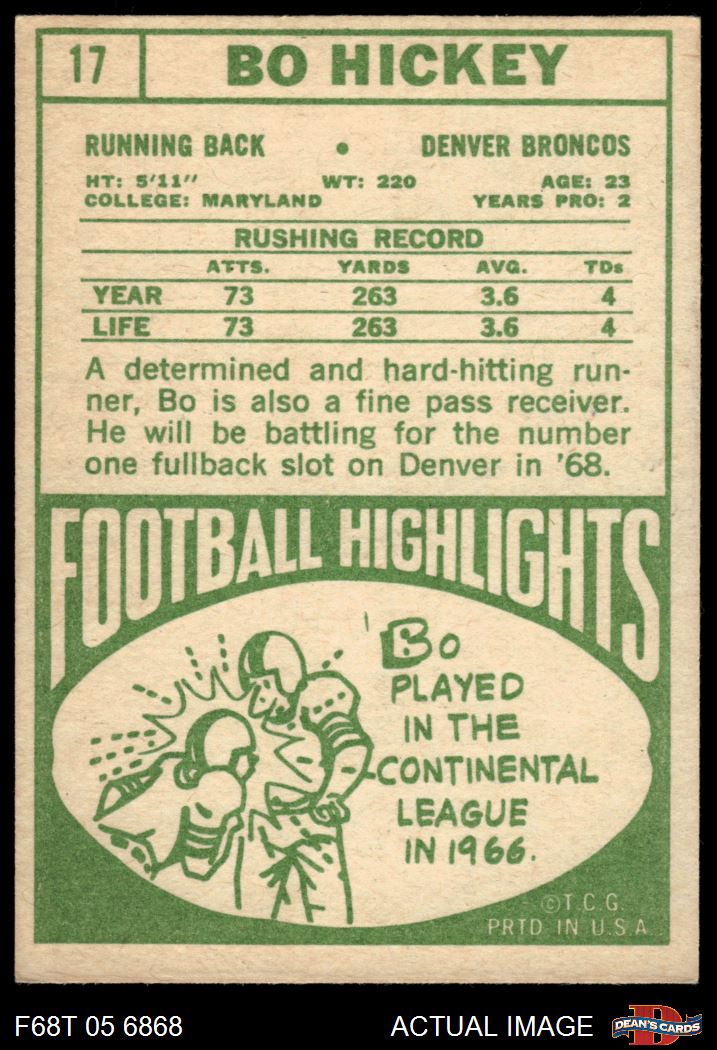 1968 Topps #17 Bo Hickey 6 - EX/MT