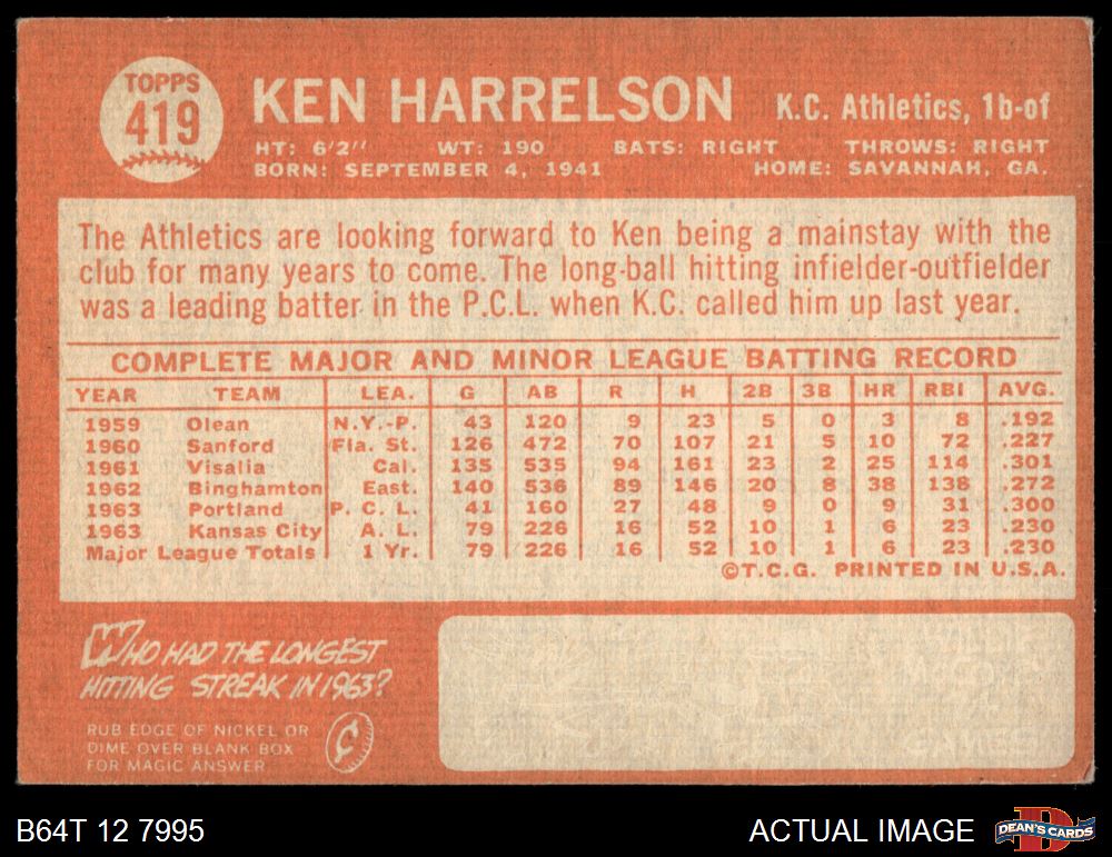 1964 Topps #419 Ken Harrelson 3 - VG