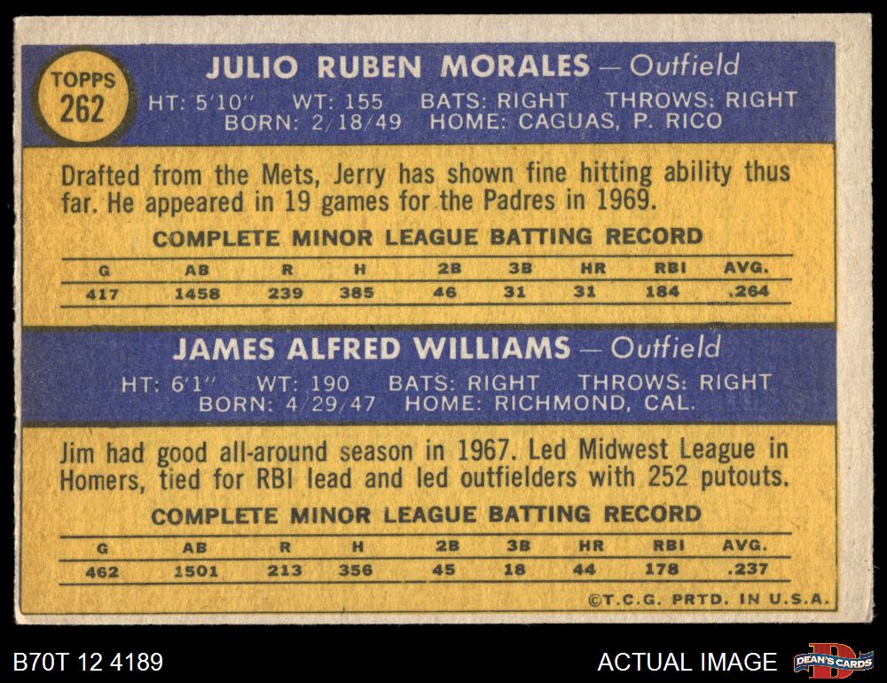 1970 Topps #262 - Jerry Morales / Jim Williams Padres Rookies 5 - EX