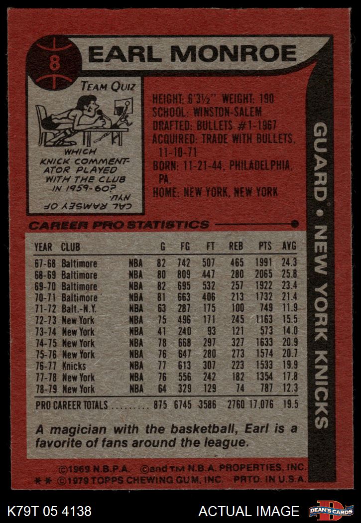1979 Topps #8 Earl Monroe 5 - EX