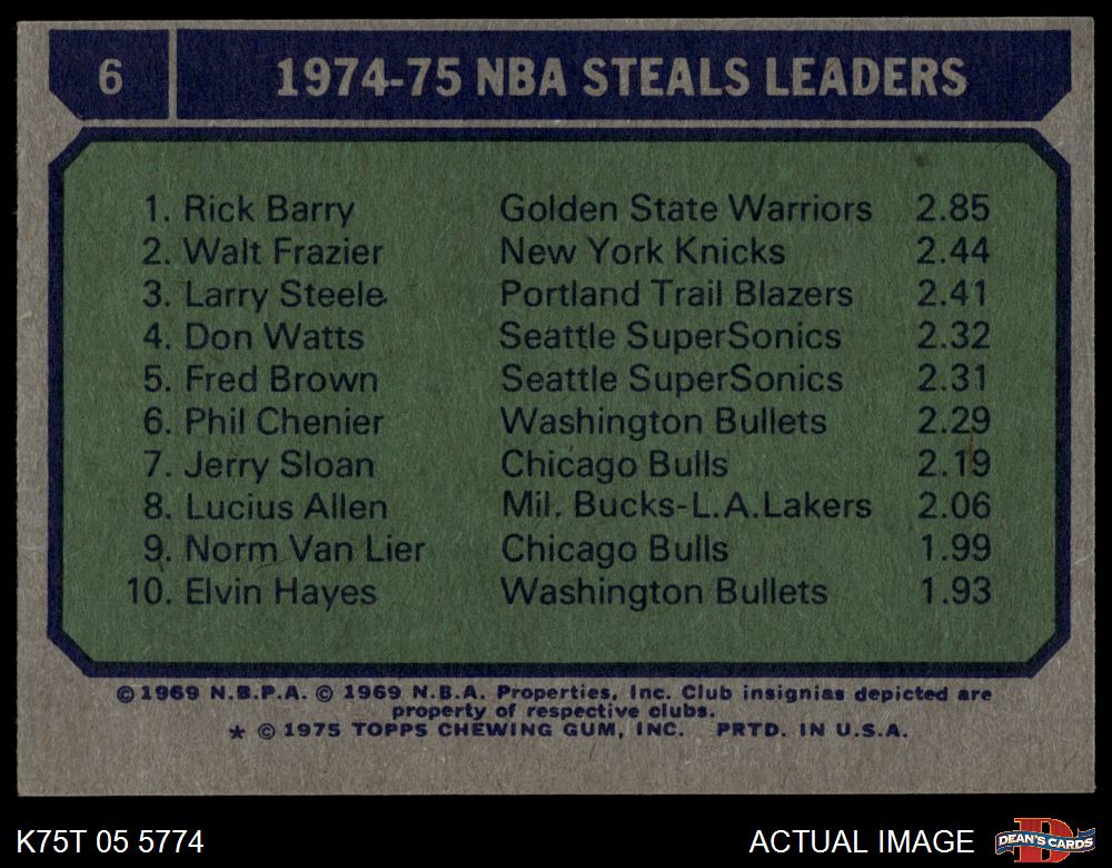 1975 Topps #6 - Rick Barry / Larry Steele / Walt Frazier NBA Steals Leaders 5 - EX