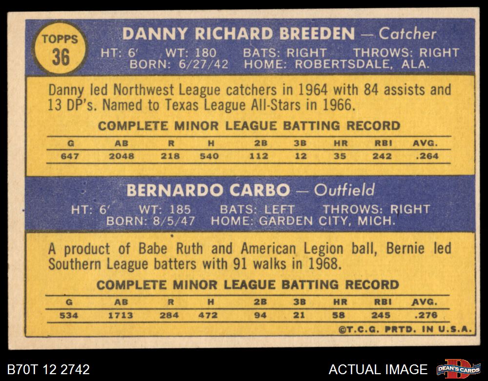 1970 Topps #36 - Bernie Carbo / Danny Breeden Reds Rookies 6 - EX/MT