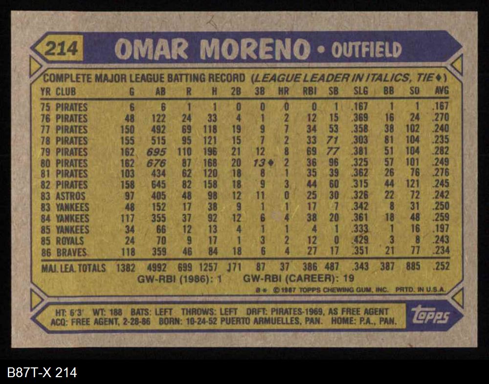1987 Topps #214 Omar Moreno