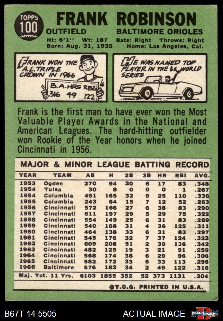 1967 Topps #100 Frank Robinson 4 - VG/EX