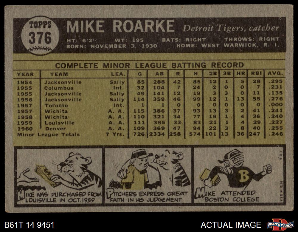 1961 Topps #376 Mike Roarke 3 - VG