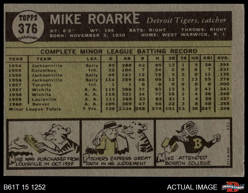 1961 Topps #376 Mike Roarke 4 - VG/EX