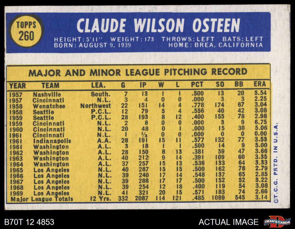 1970 Topps #260 Claude Osteen