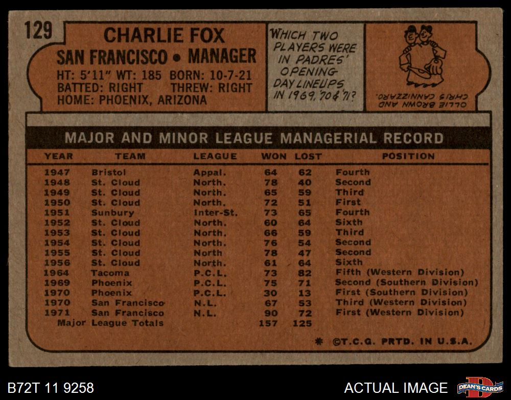1972 Topps #129 Charlie Fox 4 - VG/EX