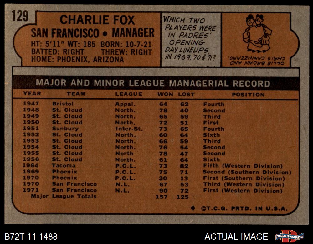 1972 Topps #129 Charlie Fox 6 - EX/MT