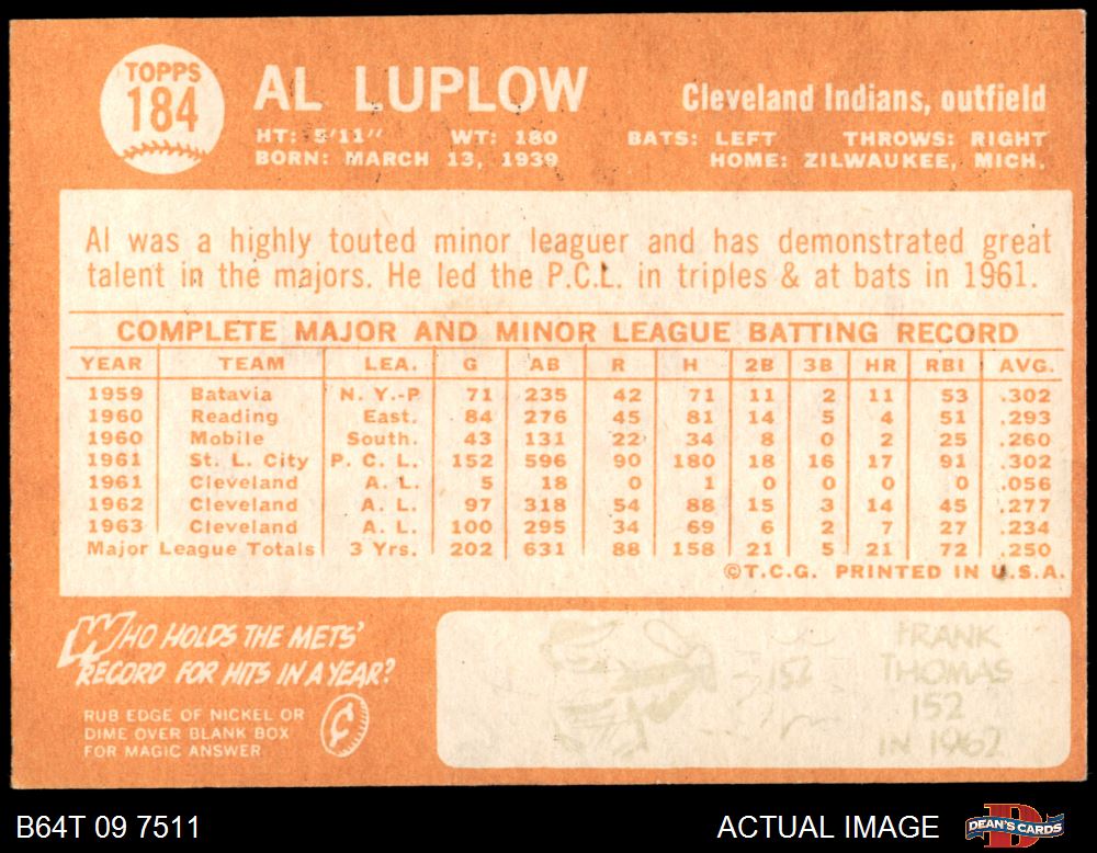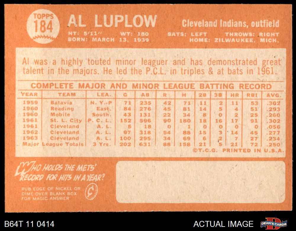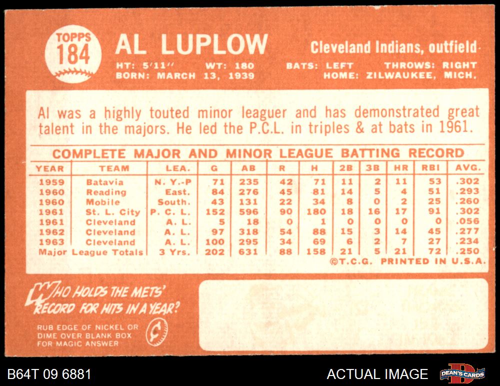 1964 Topps #184 Al Luplow 6 - EX/MT