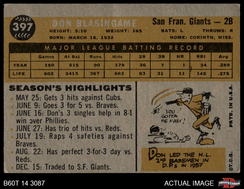 1960 Topps #397 Don Blasingame