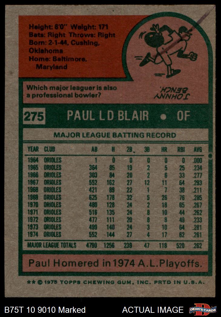 1975 Topps #275 Paul Blair 1.5 - FAIR
