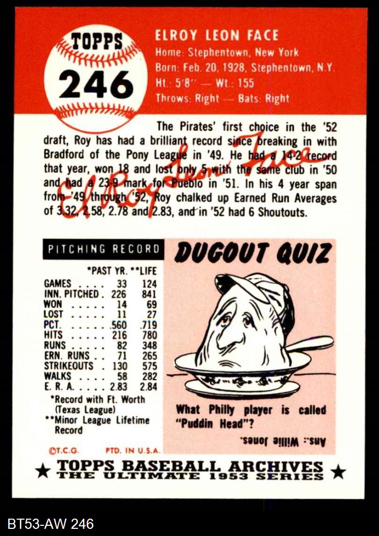 1953 Topps Archives #246 Roy Face 8 - NM/MT