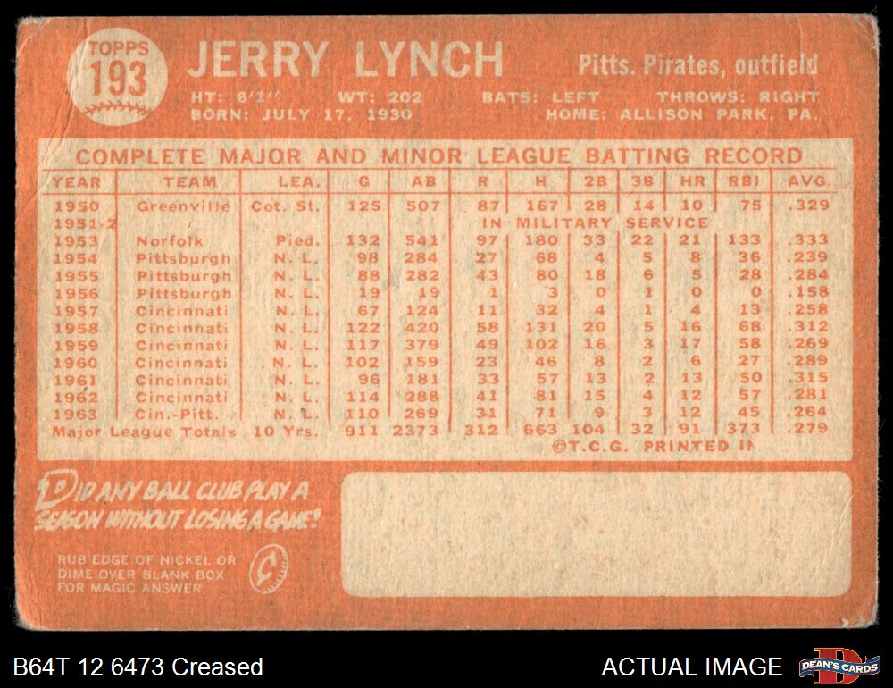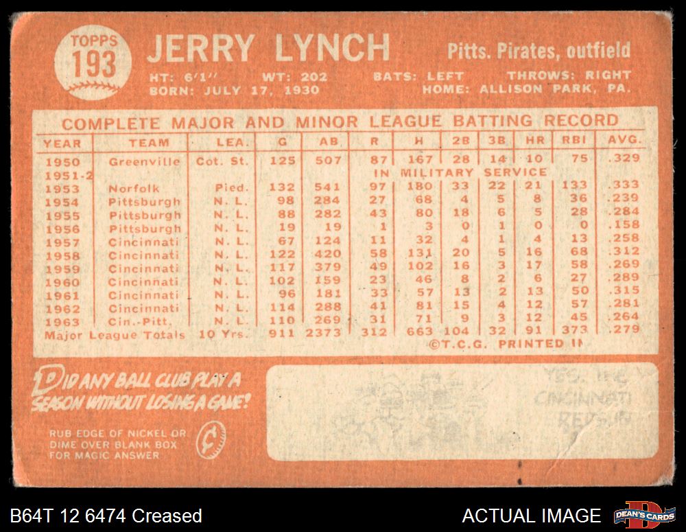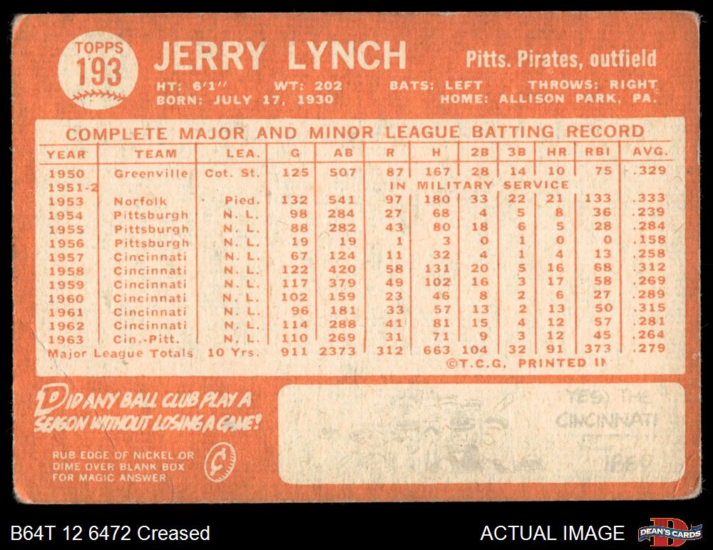 1964 Topps #193 Jerry Lynch Front Thumbnail