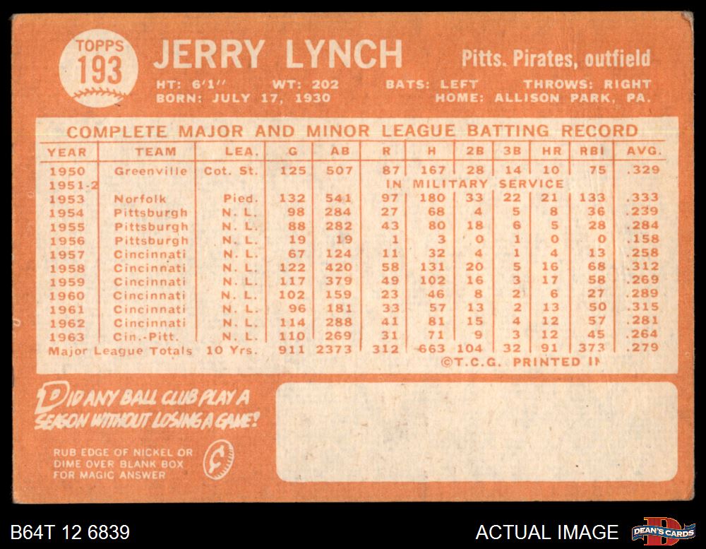 1964 Topps #193 Jerry Lynch