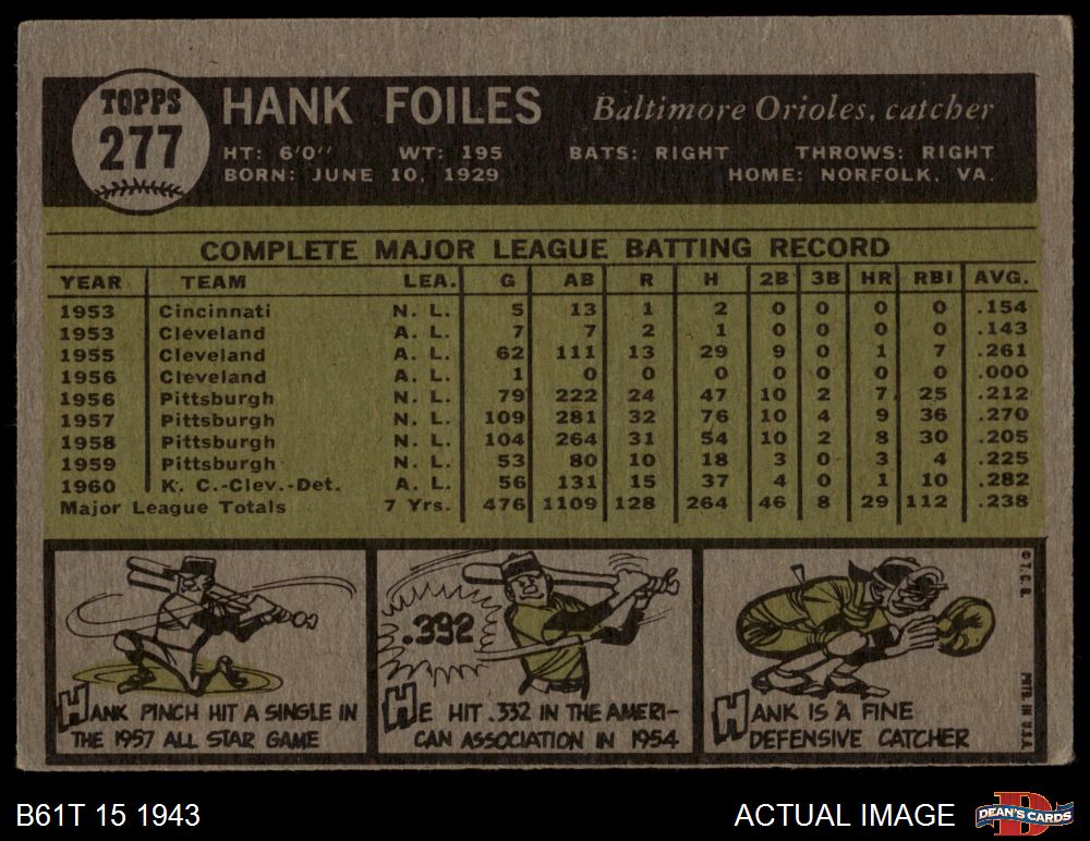 1961 Topps #277 Hank Foiles