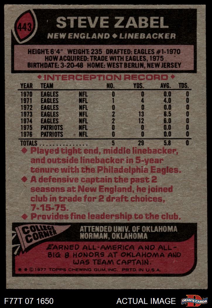 1977 Topps #443 Steve Zabel 6 - EX/MT