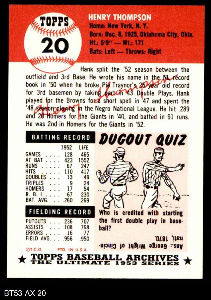 1953 Topps Archives #20 Hank Thompson