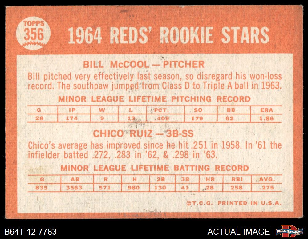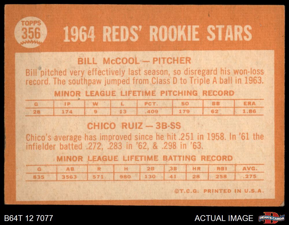 1964 Topps #356 - Bill McCool / Chico Ruiz Reds Rookies 3 - VG