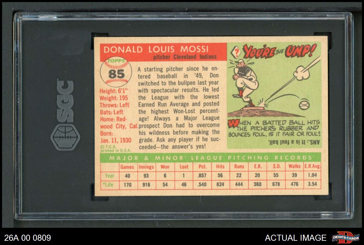 1955 Topps #85 Don Mossi SGC 8 - NM/MT