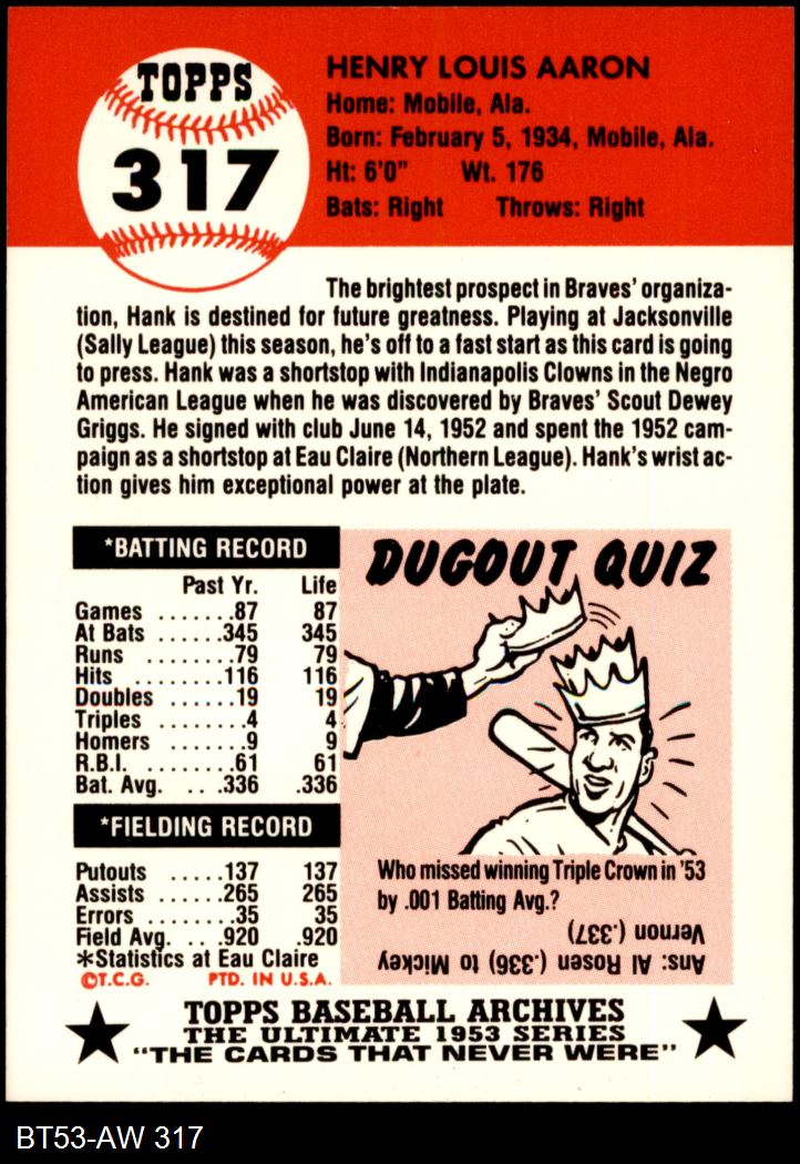 1953 Topps Archives #317 Hank Aaron 8 - NM/MT
