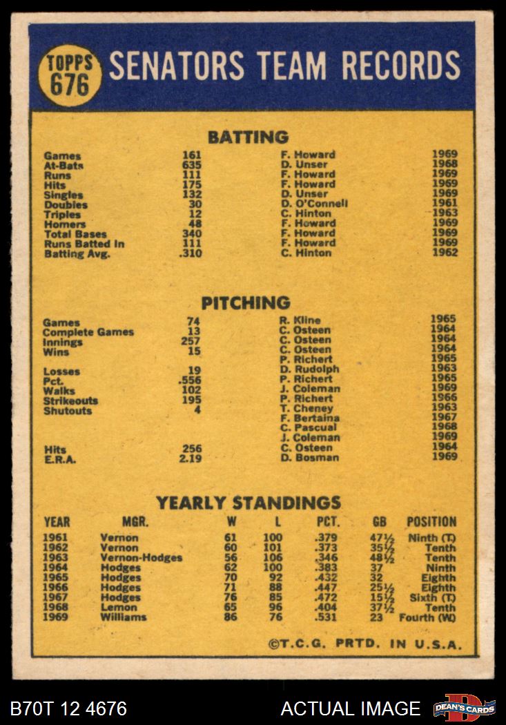 1970 Topps #676 Senators Team 2 - GOOD