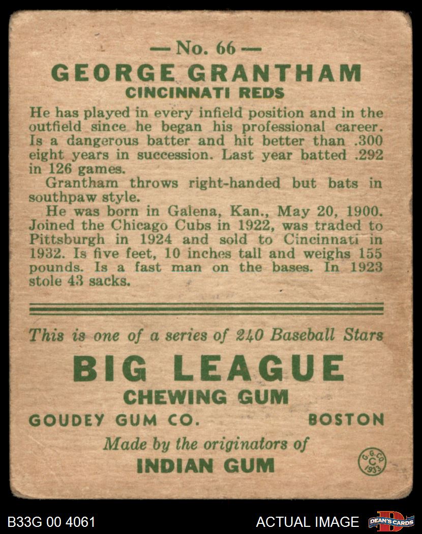 1933 Goudey #66 George Grantham 1.5 - FAIR