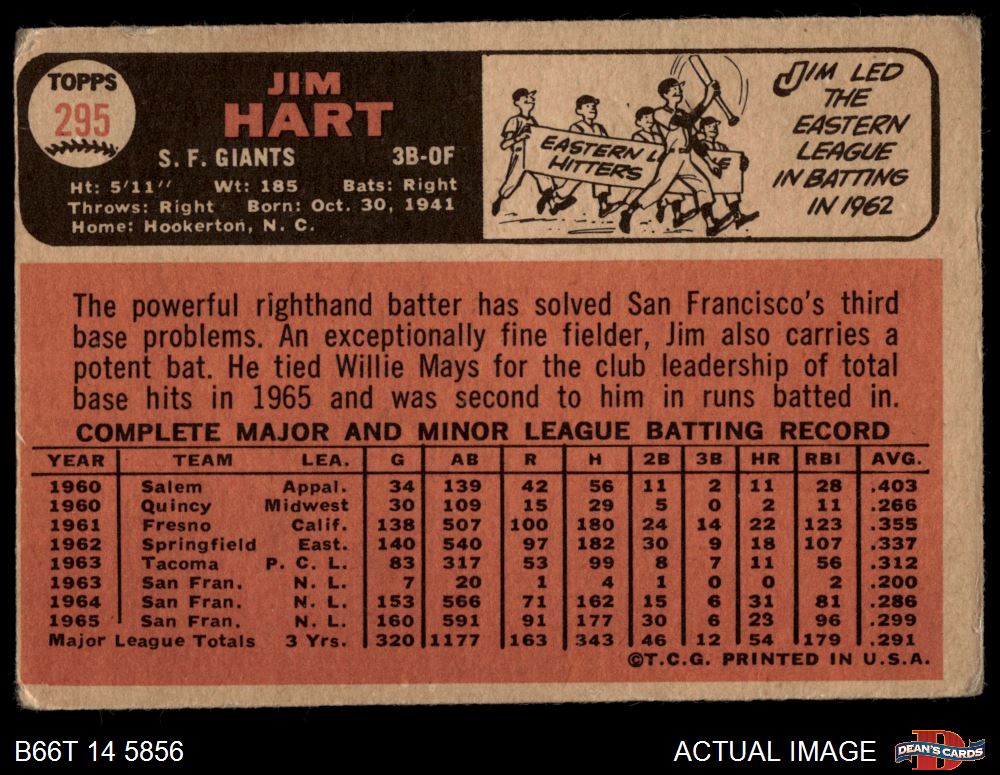 1966 Topps #295 Jim Hart 1.5 - FAIR