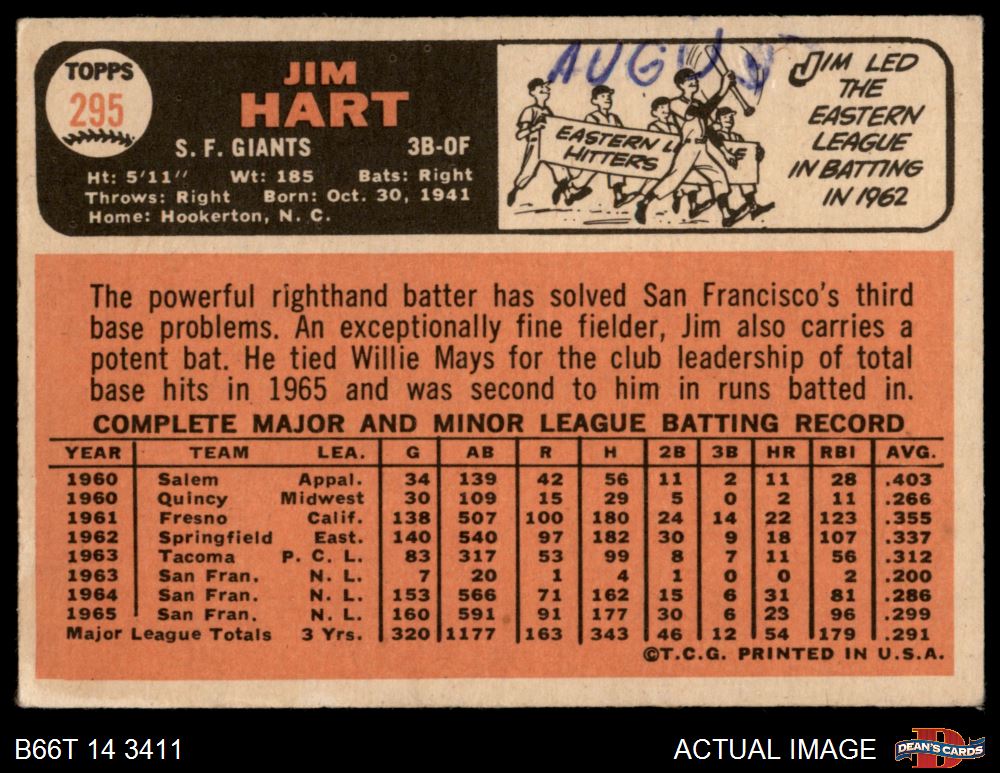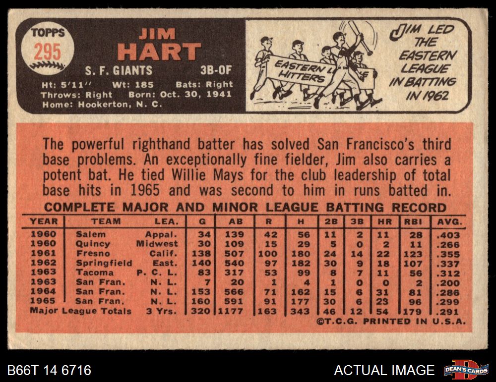 1966 Topps #295 Jim Hart 3.5 - VG+