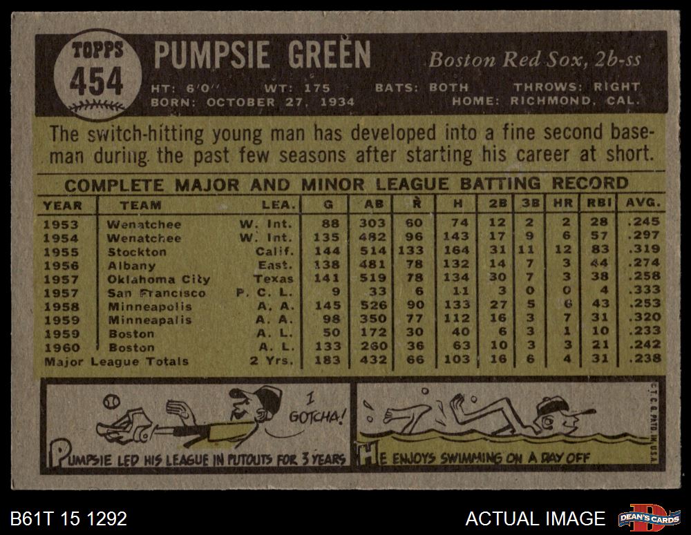 1961 Topps #454 Pumpsie Green 2 - GOOD