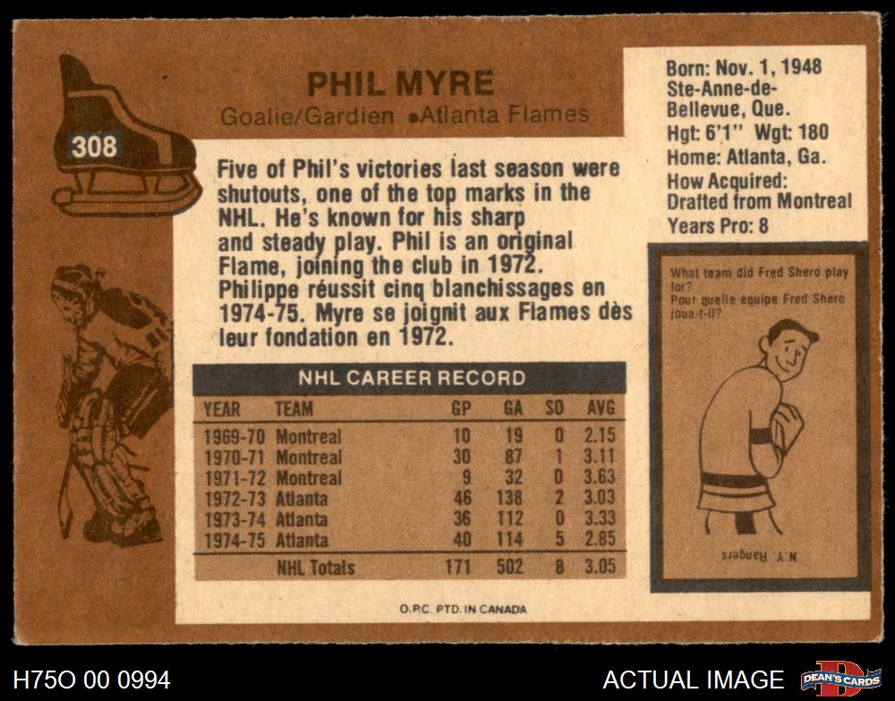 1975 O-Pee-Chee NHL #308 Phil Myre