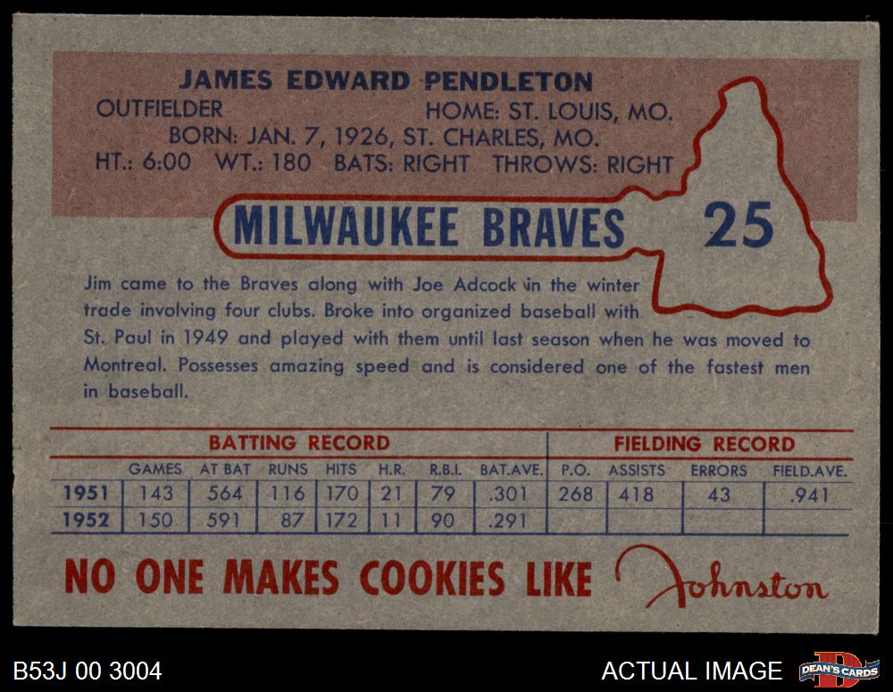1953 Johnston Cookies #25 Jim Pendleton 6 - EX/MT