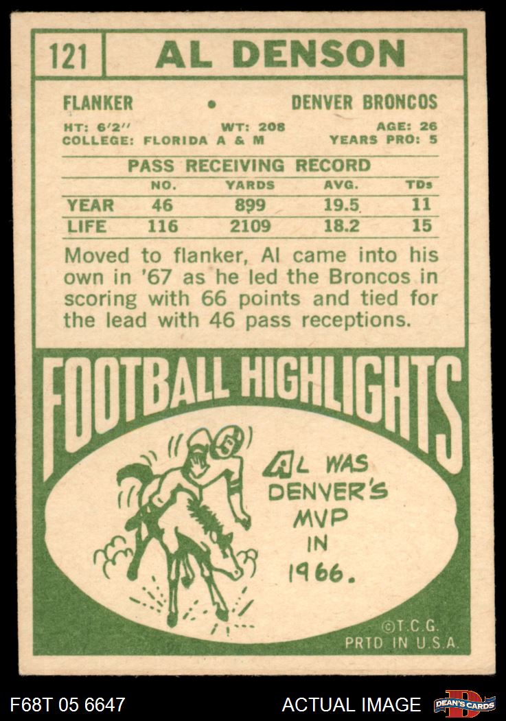 1968 Topps Football Cards (1,955 available)1968 Topps Broncos (92 available)
