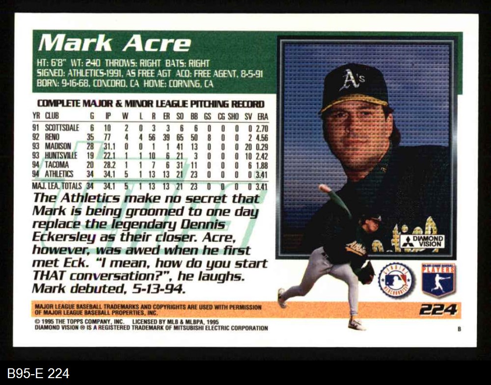 1995 Topps #224 Mark Acre 8 - NM/MT