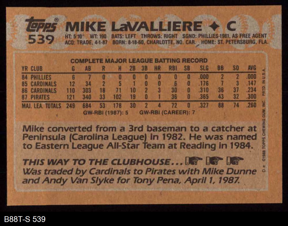 1988 Topps #539 Mike LaValliere 8 - NM/MT