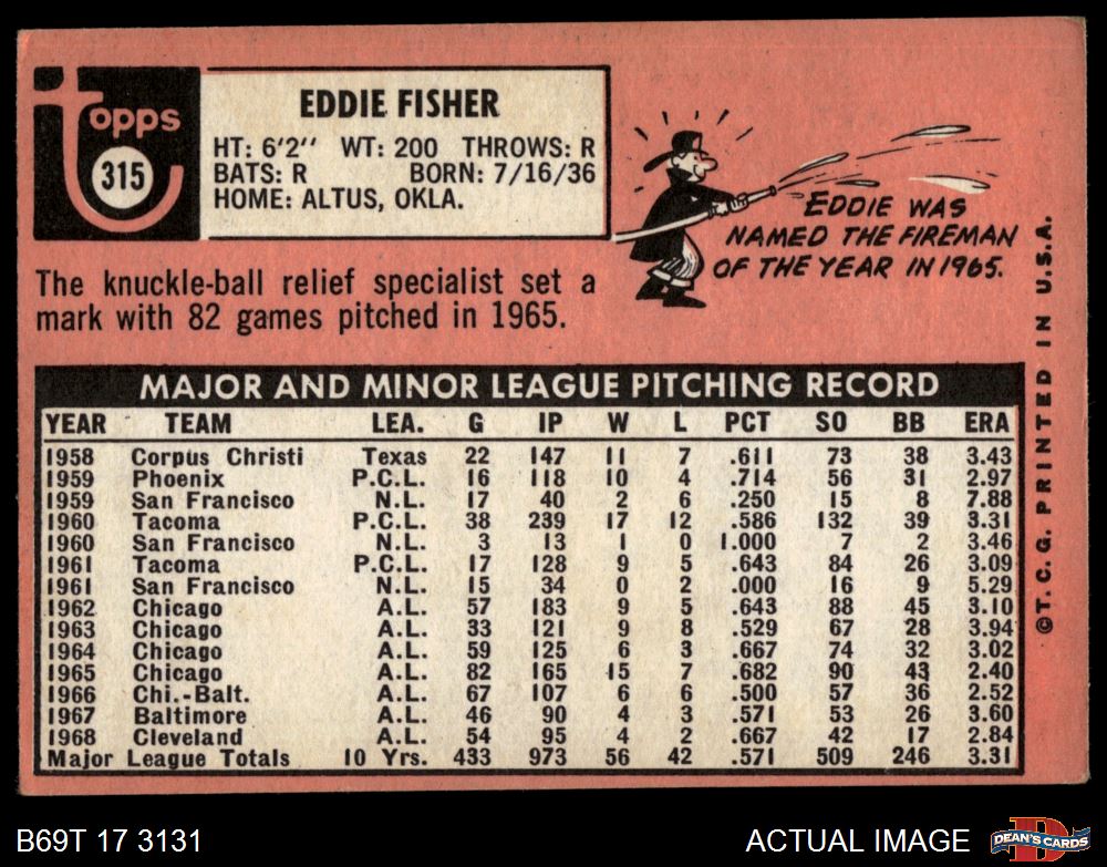 1969 Topps #315 Eddie Fisher 4 - VG/EX