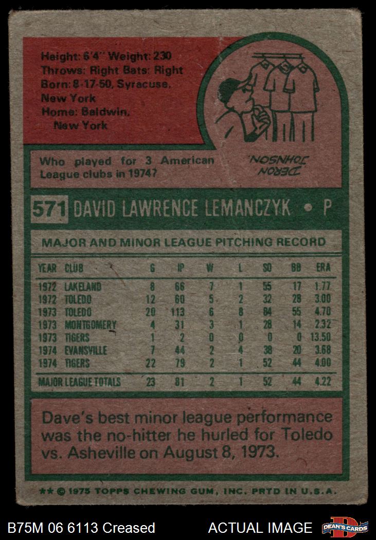 1975 Topps Mini #571 Dave Lemanczyk 2.5 - GD+