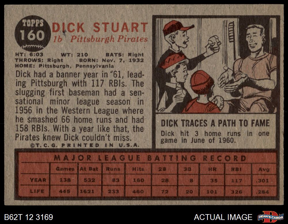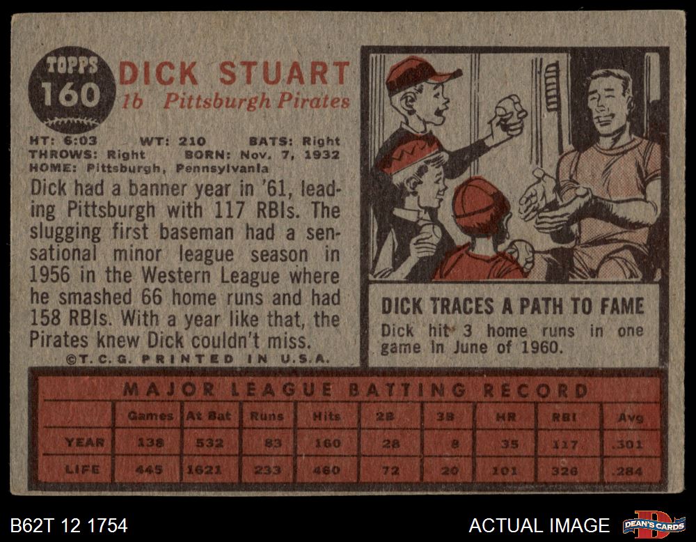 1962 Topps #160 NRM Dick Stuart