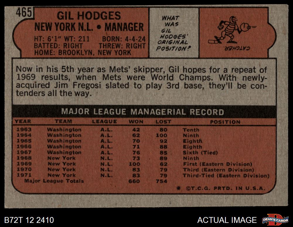 1972 Topps #465 Gil Hodges 4 - VG/EX