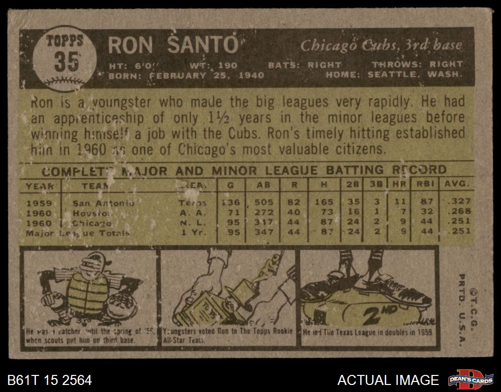 1961 Topps #35 Ron Santo 2 - GOOD
