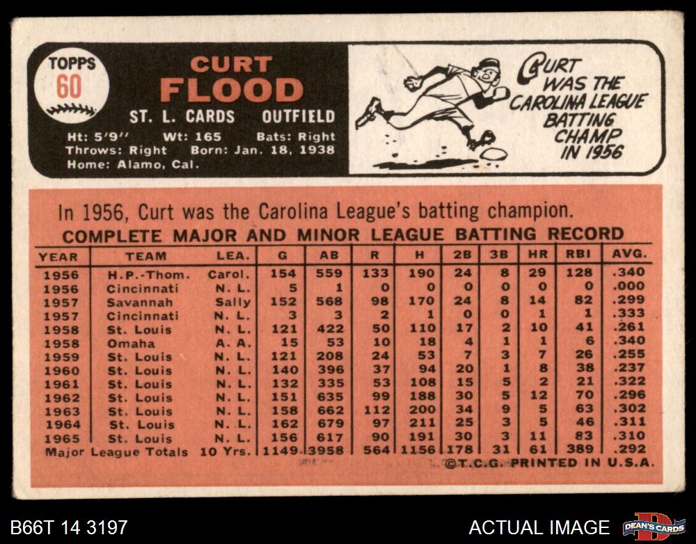 1966 Topps #60 Curt Flood 2 - GOOD