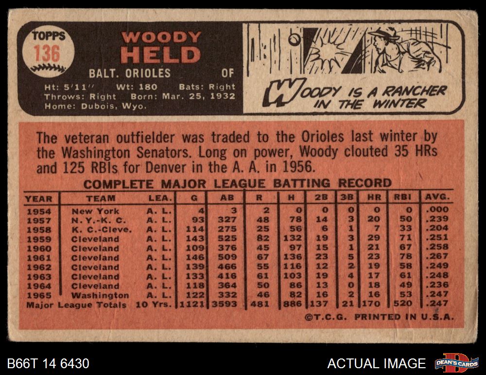 1966 Topps #136 Woodie Held 1.5 - FAIR