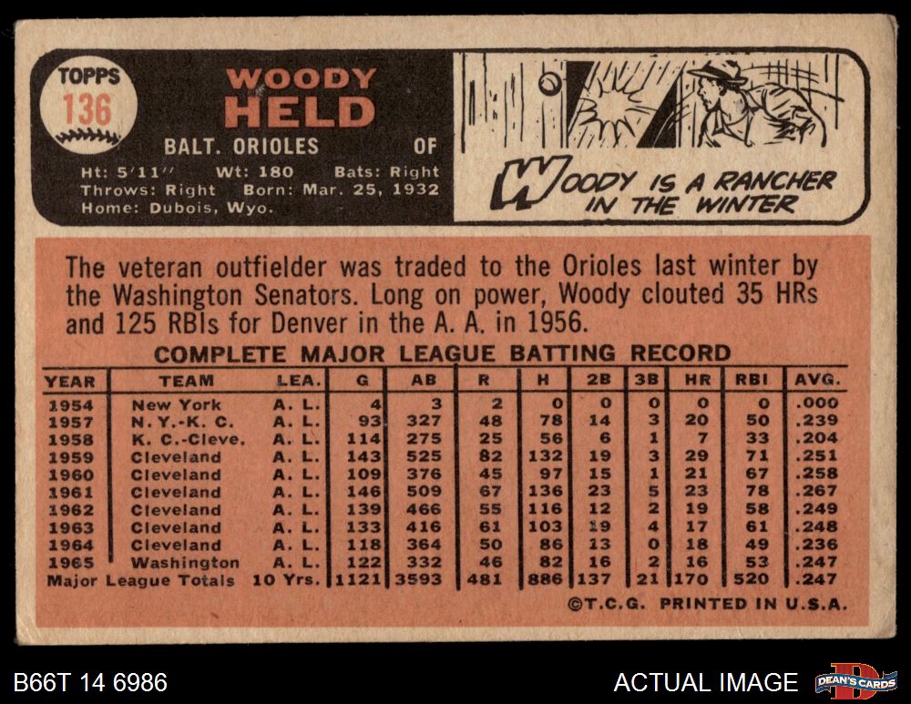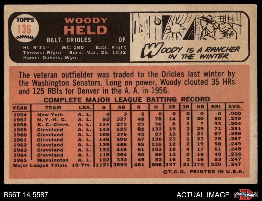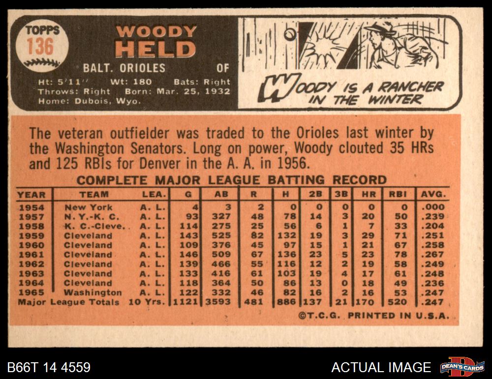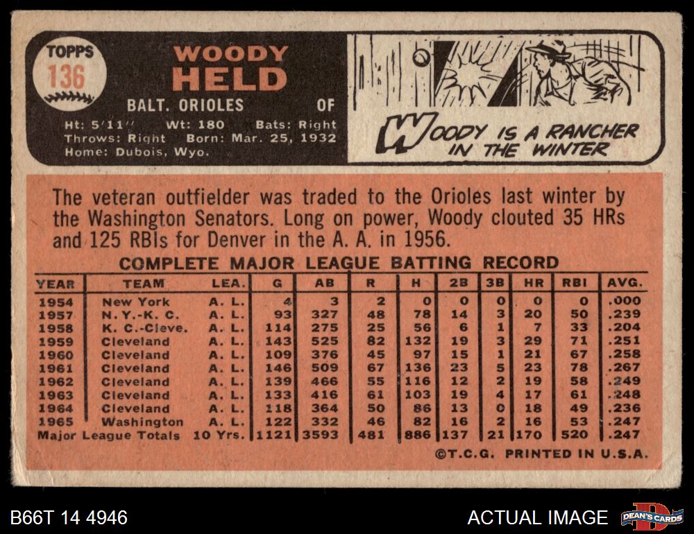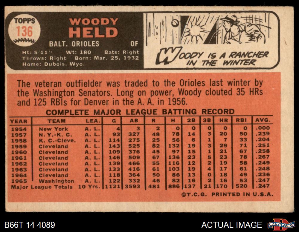 1966 Topps #136 Woodie Held