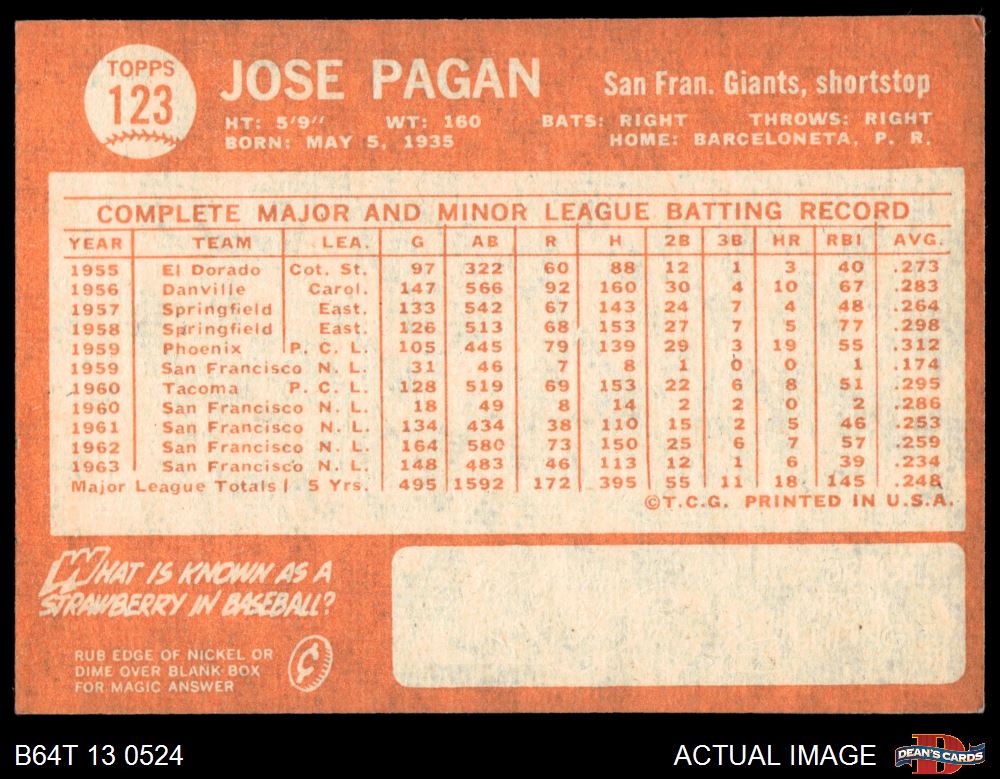 1964 Topps #123 Jose Pagan 4 - VG/EX