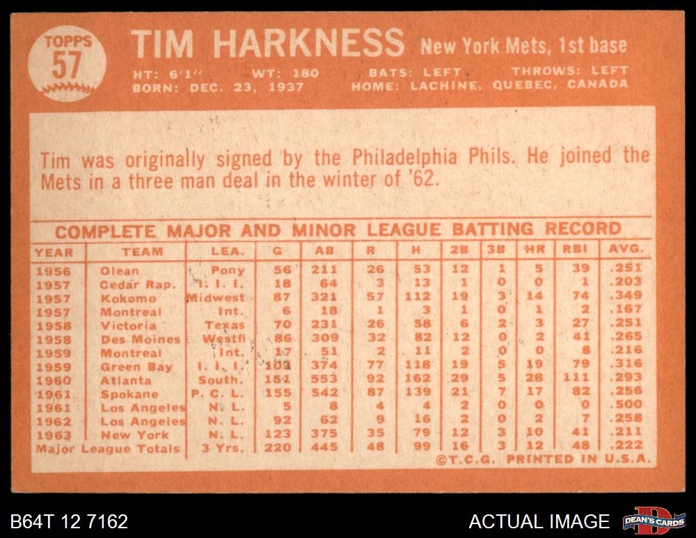 1964 Topps #57 Tim Harkness 4 - VG/EX