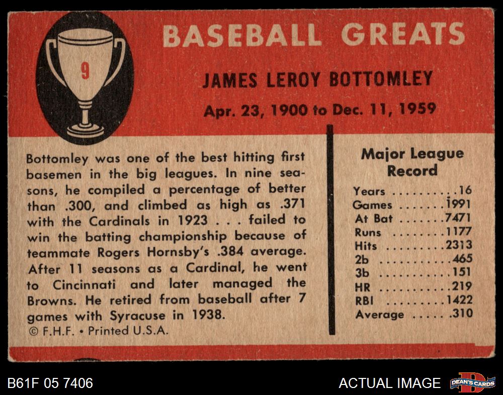 1961 Fleer #9 Jim Bottomley 2 - GOOD
