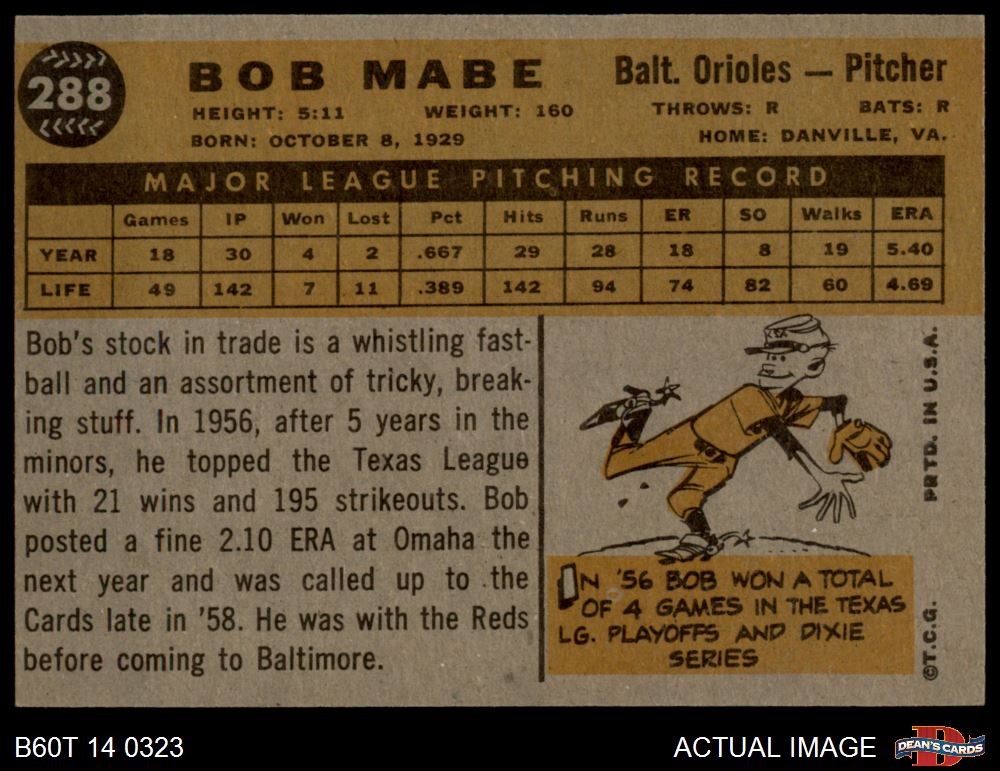 1960 Topps Baseball Cards (11,452 available)1960 Topps Orioles (835 available)
